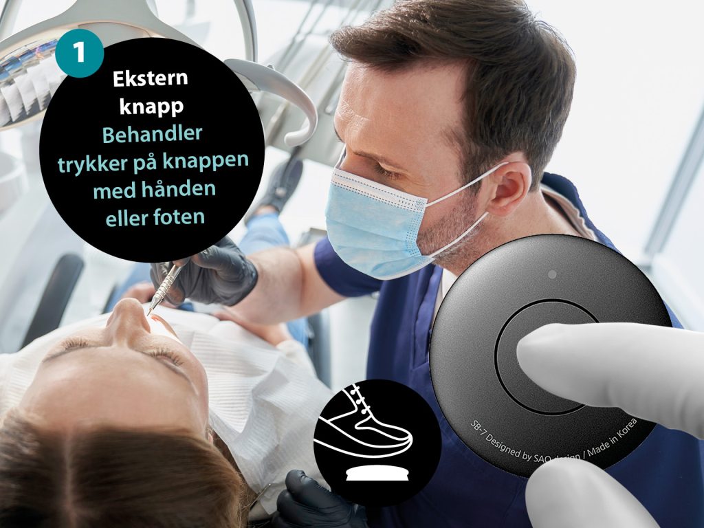 DentalCall består av intuitive knapper som plasseres der dere ønsker å tilkalle personale – typiske steder er behandlingsrom, resepsjon, sterilen, spiserom eller inngangsdøren.