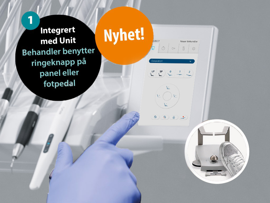 Nyhet: DentalCall kan integreres med uniten, slik at assistent kan tilkalles direkte fra behandlingsenheten med ringeknapp eller fotpedal – alt installert av sertifisert tekniker.
