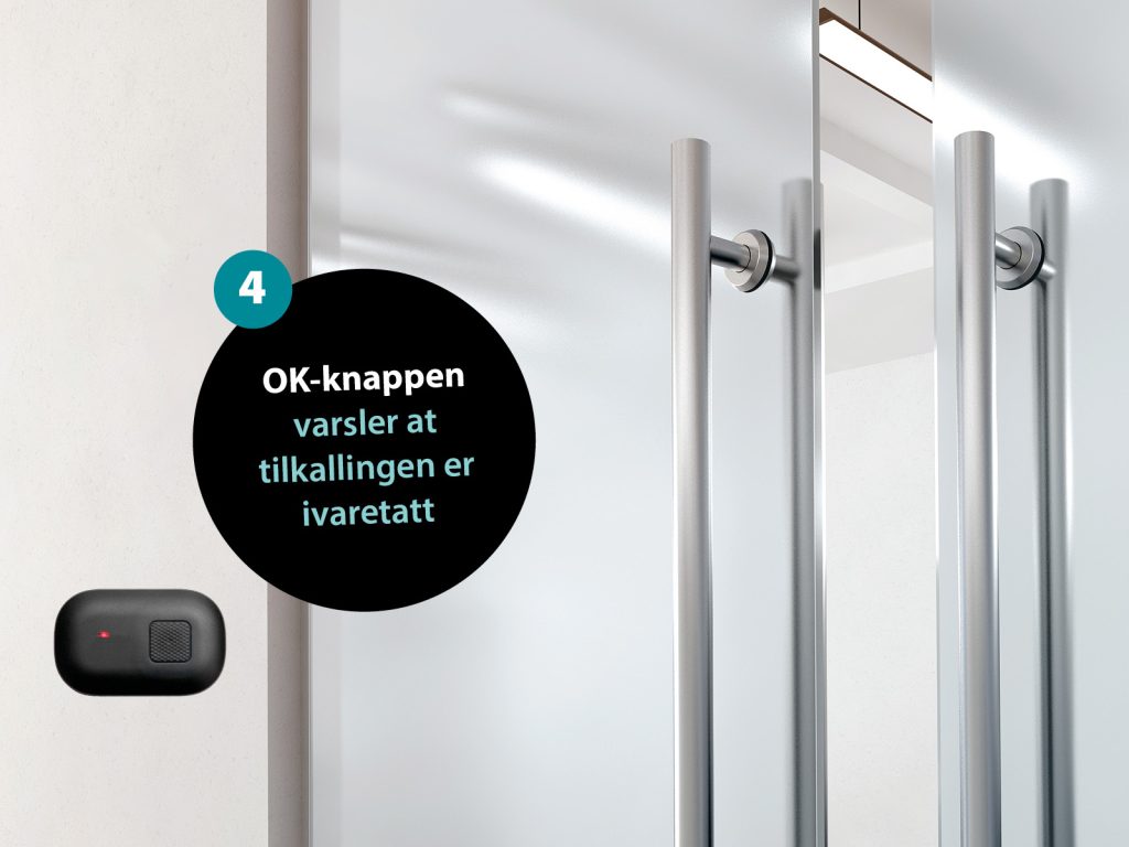 - Når en knapp trykkes, vises et oppkall på personalets klokker