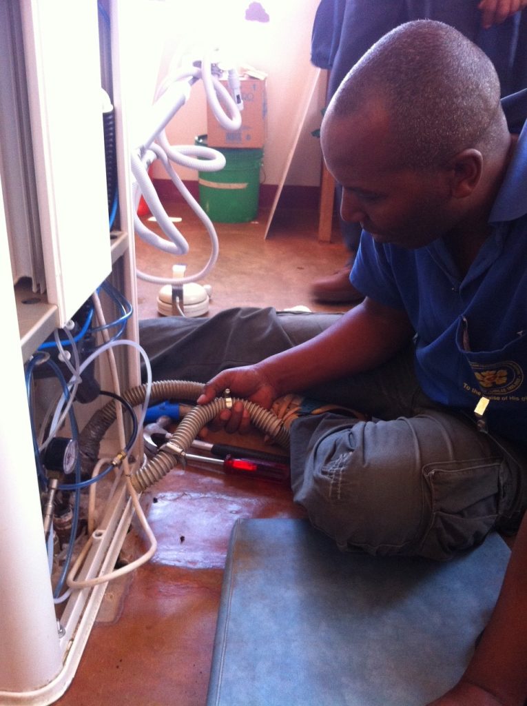 I et krevende klima med støv, sol og varierende vannkvalitet slites utstyret på en helt annen måte enn her hjemme i Norge, og det er derfor helt avgjørende å ha erfarne teknikere og slitedeler tilgjengelig. Her har vår tekniker Roald med flere vært en helt avgjørende brikke for at klinikken har gått rundt. Han har også kurset de lokale teknikerne , og for drøyt ti år siden var han med på å montere to «nye» uniter.